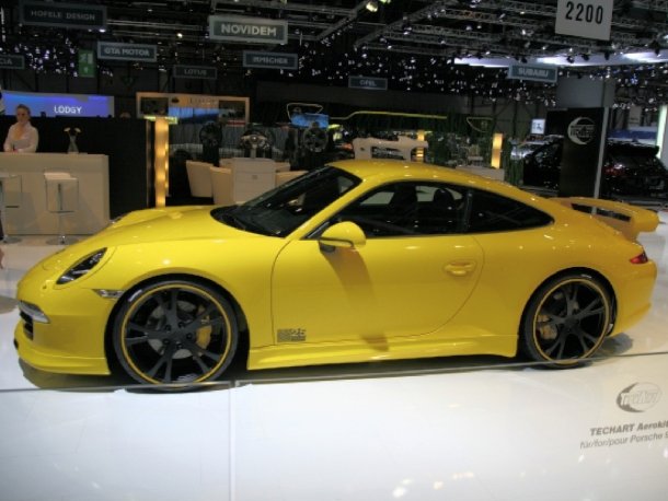 Techart brachte zum Genfer Salon das aktuelle Produktportfolio mit. Die beiden Stand-Highlights waren passenderweise gelb lackiert worden, um bereits von weitem darauf aufmerksam zu werden. Den GT Street R auf Basis des Porsche 997 Turbo kannten Fans bereits von vorherigen Messen. Dennoch ist dieser 620 PS starke Supersportler mit seiner Höchstgeschwindigkeit von 330 km/h immer noch ein Eye-Catcher. Zusätzlich wurde das umfangreiche Exterieurprogramm für den neuen 991 vorgestellt. Mit Frontschürze, Seitenschwellern, Heckschürze, Flügel und Leichtmetallfelgen individualisiert Techart die gewählte Basis deutlich. An einer Leistungssteigerung wird bereits gearbeitet.