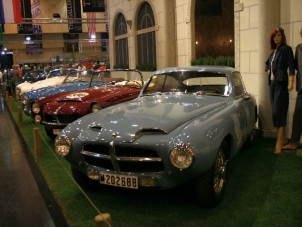 Bereits im Einleitungstext habe ich Ihnen einen Weltrekord angekündigt. Gut, dann möchte ich hiermit das Geheimnis lüften: Der S.I.H.A. ist es in diesem Jahr tatsächlich gelungen, eine Pegaso-Sonderausstellung auf die Beine, respektive die Räder zu stellen. Das allein macht noch keinen Rekord aus, doch wenn man weiß, dass diese spanische Sportwagenmarke zwischen 1951 und 1958 lediglich 86 Fahrzeuge gebaut hat, dann sind 21 Ausstellungsstücke (inklusive eines Sportbootes) in der Tat eine Sensation. Soviele Wagen dieser Marke waren noch nie am gleichen Platz zur selben Zeit zu sehen. Dazu kommt, dass Pegaso damals lediglich die Chassis lieferte und die Kunden ihre Autos individuell bei Karosseriebauern einkleiden ließen. Somit gleicht kein Fahrzeug komplett dem anderen. Einzig einige Details zeigen sich an manchen Wagen mehrfach.