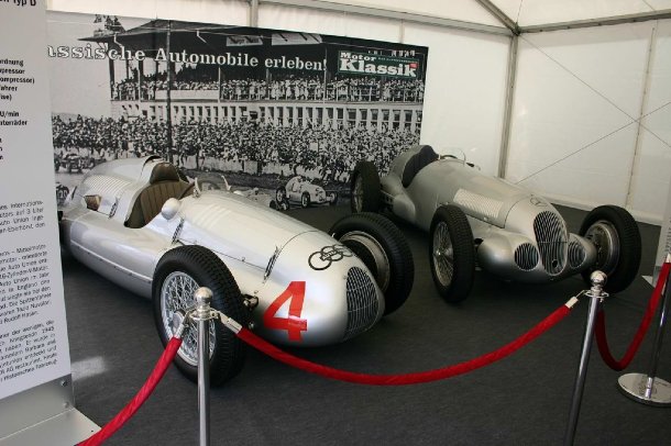 Wie jedes Jahr habe ich mich zuerst im Fahrerlager umgesehen, um zu schauen, wer so alles angereist ist und welche tollen Autos man zu sehen bekommt. Bereits vorm Eingang des Dorint-Hotels erwartete die Besucher eine Anzahl netter Sportwagen, darunter einige Ford GT40 Nachbauten, zwei KTM X-Bow und ein Lamborghini Miura. Im alten Fahrerlager stehen Tür an Tür Vorkriegsklassiker in und vor den alten Boxen, ein toller Anblick. Neben den ganzen Teilnehmern fand sich im GP-Fahrerlager ein Zelt von Opel mit einem Überblick über die Historie der Kadett-/Astra-Baureihe. Ganz nett, aber eigentlich wollte ich ja Sportwagen sehen. Oh, was ist das? Alfa Romeo hat einen Pavillion aufgebaut und drin steht ein weißer 8C Spider, na das ist doch mal ein Augenschmaus. Einige Meter weiter erreicht man das Zelt von Coys of Kensington, die am Samstag einige Autos versteigerten, aber auch einen Porsche 906 Carrera 6 draußen vorm Zelt ausstellten, der nicht im Auktionskatalog stand. Motor Klassik feiert 25-jähriges Bestehen und zeigte im eigenen Zelt weitere Geburtstagskinder: im Rahmen von „75 Jahre Silberpfeil“ waren ein Auto Union und ein Mercedes-Benz Rennwagen von 1934 zu sehen. Nochmal einige Schritte weiter (vorbei an Preziosen wie einem dunkelgrünen BMW 3.0 CSL) kommt man in die Mercedes-Arena, wo in diesem Jahr der Alfa Romeo Club, der Mercedes-Benz 300 SL Club, der Maserati Club Deutschland, der Ferrari Club Deutschland, Porsche und Isdera ihre Autos zeigen durften. Da am Freitag viele Leute arbeiten müssen war nur der Stand von Isdera in voller Stärke vertreten.
