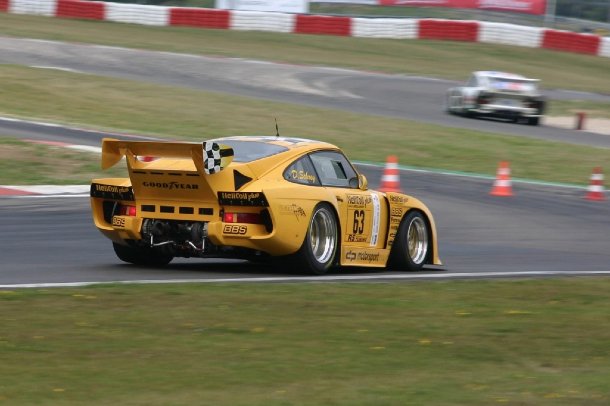 Als für mich persönlich letzten Höhepunkt des diesjährigen OGP hatte ich mir das Revival der Deutschen Rennsportmeisterschaft (DRM) ausgeschaut. Hier treten Porsche 935 gegen BMW M1 Procar, DeTomaso Pantera gegen BMW 3,0 und 3,5 CSL und Ford Capri RS gegen Porsche 911 Carrera RSR an. Ein Höllenspektakel, bei dem dieses Jahr nicht weniger als 4 Porsche 934 auf eine Horde von 7 BMW M1 Procar trafen. Nach einer turbulenten Anfangsphase mit viel Staub im Veedol-S gab es einen spannenden Zweikampf um die Spitze zwischen dem weißen Liqui Moly Porsche 935 und dem gelben Schwesterauto von Daniel Schrey (Startnummer 63). Leider fiel das Liqui Moly Auto aufgrund eines technischen Defektes aus, wodurch Daniel Schrey nach dem Samstagsrennen nun auch das Rennen am Sonntag gewinnen konnte.