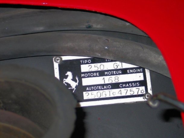 • 3729GT, 250 GTO, gebaut im Juli 1962, Weiß, später Rot umlackiert worden, schwarzes Interieur, Rechtslenker, Erstauslieferung in Großbritannien