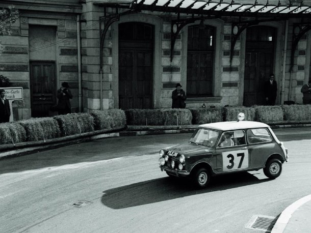 So aufgerüstet machte sich eine kleine Mannschaft rund um den Rallyefahrer Rauno Aaltonen auf zur Rallye Monte Carlo 1964. Wer schon einmal einen Mini neben einem Austin Healey 3000 oder einem Saab 92 hat stehen sehen, kann sich grob ausmalen, wie laut das Gelächter der Konkurrenten vor Ort war. Was wollte diese kleine englische Mannschaft mit diesem Winzling denn bitte bei der Mutter aller Rallyes ausrichten können? Noch dazu mit Frontantrieb, geht’s denn noch peinlicher? Ja, geht. Wenn man nämlich auf das Endergebnis schaut, stand plötzlich der Name „Mini“ meilenweit oben an, danach lange nichts und dann die kleinlaute Gegnerschaft. Vernichtend geschlagen im ersten Anlauf. Auch 1965 und 1967 stand ein Mini-Fahrer ganz oben auf dem Podest in der Fürstenloge in Monte Carlo. 1966 hätte man eigentlich auch gewonnen, allerdings gab es einen nicht ganz nachvollziehbaren Protest gegen angeblich nicht homologierte Zusatzscheinwerfer, weswegen das BMC-Team komplett aus der Wertung genommen wurde. Auch damals gab es bereits Kleinkriege zwischen einzelnen Automobilverbänden und -herstellern. Neben den Rallye-Erfolgen machte sich der Mini inzwischen auch auf der Rundstrecke einen hervorragenden Namen, wo er gegen viel stärkere Gegner häufig Siege herausfahren konnte. Übrigens errang Niki Lauda in einem Mini seine ersten Pokale.