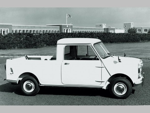 Anfangs wurde das radikal neue Konzept des Mini jedoch nicht verstanden. Ein nur drei Meter kurzes Auto, in das allen Ernstes vier Erwachsene Personen und eine Hand voll Gepäck passen sollte, und das alles für nur 496 britische Pfund? Speziell die Engländer wollten lieber „ein richtiges Auto“. Angeblich prägte damals der Londoner Volksmund den Spruch „It looks like a postbox on wheels.“ („Er sieht aus wie ein Briefkasten auf Rädern.“). Nach und nach entdeckten jedoch die damals Schönen und Reichen, wie Brigitte Bardot oder Clint Eastwood den Mini als idealen Stadtwagen. Dadurch setzte ein Trend ein, den man auch heute noch kennt: Wenn ein Star einen bestimmten Gegenstand benutzt oder ein bestimmtes Auto fährt, muss der Fan sowas auch haben. Der Mini wurde zum Riesenerfolg. Die Jahresproduktion war ursprünglich mit 200.000 Fahrzeugen angesetzt worden, musste aber bereits 1962 angehoben werden. Zu diesem Zeitpunkt gab es bereits eine regelrechte Modellfamilie des Mini. 1960 hatte man den Kombi, bei Morris „Mini Traveller“ und bei Austin „Seven Countryman“ genannt, und eine Version mit Blech anstelle von hinteren Seitenfenstern als Van vorgestellt. Ergänzt wurden sie durch den Pick-up und eine Variante mit angehängtem Kofferraum, die als Riley Elf oder Wolseley Hornet zu bekommen waren. Sie unterschieden sich vom eigentlichen Mini durch eine eigenständig gestaltete Frontpartie. 1964 schließlich war die Mini-Familie komplett, der verrückte Onkel war angekommen. Verrückter Onkel? Nun, in jeder Verwandtschaft hat man doch eigentlich irgendjemanden, dem man milde gesagt einen gewaltigen Nagel im Kopf zuschreibt. Dies war im Falle des Mini unzweifelhaft der Moke, ein mehr oder minder geländetaugliches Spaßfahrzeug mit Notdach und ohne Türen. Auf Basis vom normalen Mini und vom Moke wurden in der Folgezeit einige Versuche mit zwei Motoren gemacht, wovon einer die Vorder- und einer die Hinterräder antrieb. Ein solches Fahrzeug fuhr unter anderem bei der Targa Florio-Straßenrallye in Italien mit. Das Auto war unerwartet schnell, allerdings verbrauchte der hintere Motor mehr Kühlflüssigkeit als Benzin, weswegen die Experimente alsbald eingestellt wurden.