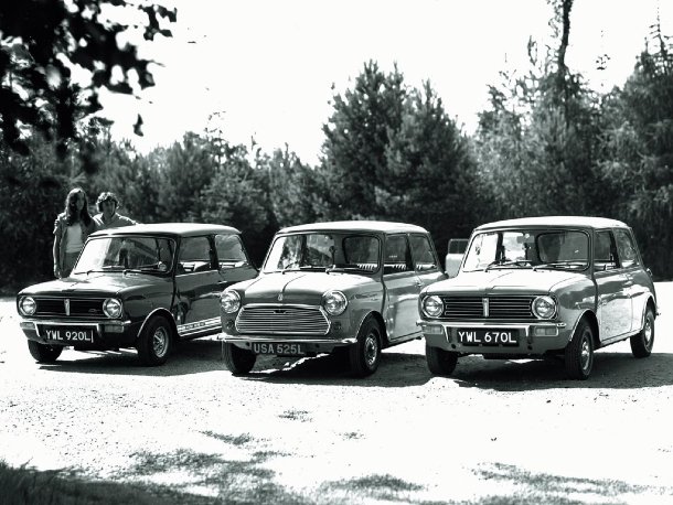 1967 wurde der Mini durch die elf Zentimeter längere Clubman-Variante ergänzt, die von vorne an der eckig-gestalteten Front zu erkennen ist. Den 848 ccm Motor ersetzte eine Version mit 998 ccm und 28 kW/38 PS. 1969 gab es das einzige wirklich große Facelift am Mini. Die außenliegenden Scharniere der Türen wichen innenliegenden, anstelle der gewohnten Schiebefenster fanden die Kunden nun welche zum Kurbeln und an der Front prangte endlich ein eigenständiges Mini-Logo.