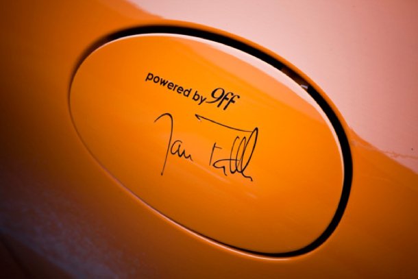 Von außen eigentlich ein normaler Porsche 997, optisch eine Mischung aus GT3 RS und GT2. Die einzigen offensichtlichen Anzeichen dafür, dass es kein Modell von der Stange ist, sind die 9ff Embleme auf der Haube und der Heckscheibe sowie der „GTurbo 850“-Schriftzug auf dem Heck. Wenn man genau hinsieht, ist über die komplette Fahrzeuglänge noch ein 9ff-Schriftzug angebracht, allerdings ist die Farbe nur eine Nuance kräftiger als der restliche Lack.