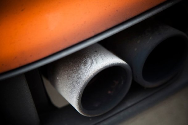 Von außen eigentlich ein normaler Porsche 997, optisch eine Mischung aus GT3 RS und GT2. Die einzigen offensichtlichen Anzeichen dafür, dass es kein Modell von der Stange ist, sind die 9ff Embleme auf der Haube und der Heckscheibe sowie der „GTurbo 850“-Schriftzug auf dem Heck. Wenn man genau hinsieht, ist über die komplette Fahrzeuglänge noch ein 9ff-Schriftzug angebracht, allerdings ist die Farbe nur eine Nuance kräftiger als der restliche Lack.