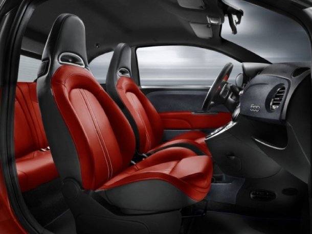Der 595 Turismo verbindet Sportlichkeit und Leistung mit Eleganz. Die Karosserie trägt im oberen Bereich die Farbe Grigio Pista (Grau metallic) und untenrum Rosso Officina (Rot), während der Einsatz im vorderen Kühler und der Diffusor im Heck Grigio Titanio (Titangrau) lackiert werden. Auf den Fahrzeugflanken und am Heck finden sich Neuauflagen des historischen „595“-Schriftzuges, der bereits in den 60er Jahren auf Abarth-Fahrzeugen zum Einsatz kam. Titanfarbene Leichtmetallräder in 17 Zoll füllen die Radhäuser aus und geben dem Fahrzeug eine sportliche Note. Das Interieur trägt Leder in rot und schwarz, sowie ein Sportlenkrad mit Schaltwippen.