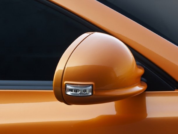 Das Orange metallic setzt die Möglichkeit von Sonderfarben für den GT deutlich in Szene. Artega versprüht auf Wunsch Lacke jeglicher Hersteller auf den Sportwagen. Das Orange stammt von einer wohlbekannten Sportwagenmarke aus Italien und steht dem Artega GT hervorragend. In Verbindung mit den zweifarbigen Leichtmetallfelgen und den neu gestalteten, kleineren und aerodynamisch günstigeren Außenspiegeln wird das Exterieur abgerundet. Hinter den Felgen verbergen sich ab jetzt ab Werk gelochte Bremsscheiben, die optional gegen noch größere Exemplare getauscht werden. Dazu gibt es gegen Aufpreis ein Sportfahrwerk mit Abstimmung für die Nüburgring Nordschleife.