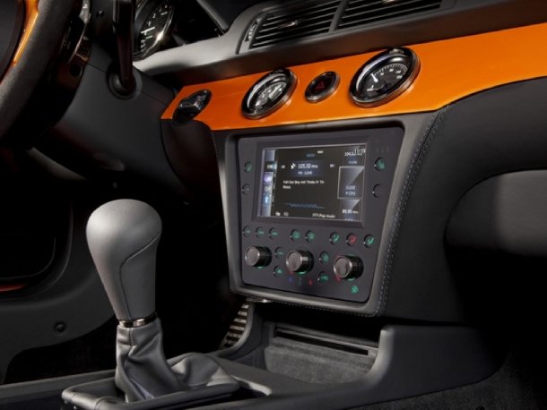 Das Interieur präsentiert sich passend zur Lackierung in schwarz und orange. Auf den Sitzen gibt es zwischen den schwarzen Lederwangen eine orange-farbene Bahn, während die Dekorleisten an Armaturenbrett und Lenkrad in Außenfarbe lackiert wurden. Das Sonderleder-Angebot für den GT wurde um weitere 25 Farben erweitert und bietet somit kaum mehr Möglichkeiten, einen Wunsch nicht erfüllen zu können. In der Mittelkonsole findet sich eine neue Multifunktions-Einheit mit einem integrierten Navigationssystem von Pioneer. Damit reagiert man auf Kritiken von Testern und Besitzern, die den bisherigen Navi-Bildschirm im Innenspiegel für zu klein hielten. Dieser ist nun kleiner, elektrisch abblendend ausgeführt und beherbergt in seinem Fuß an der Windschutzscheibe sowohl Licht- als auch Regensensor.