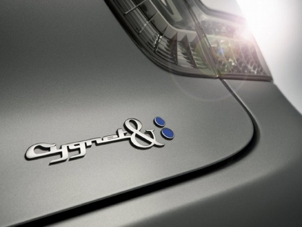 Im Innenraum durften sich die Colette-Designer ein wenig austoben. Dunkelbraunes Leder im Farbton „Zartbitter Schokolade“ wurde mit blauen Ziernähten und einigen Details in Alcantara so verarbeitet, dass ein durchaus stimmiges Bild entstanden ist. Bei der Farbe orientierte man sich am Colette-Maskottchen, einem dunkelbraunen Hund namens Oscar. Auf den Sitzflächen, den Türtafeln und den Sonnenblenden finden sich rautenförmige Steppungen, die auf den beigelegten, Colette-blauen Kissen wieder aufgenommen wird. Die inneren Türgriffe und die Dekorleisten sind aus Aluminium gefertigt und mit Gravuren versehen. Beim Start des serienmäßigen Navigationssystems erscheint im Display das „Cygnet & Colette“-Logo.
