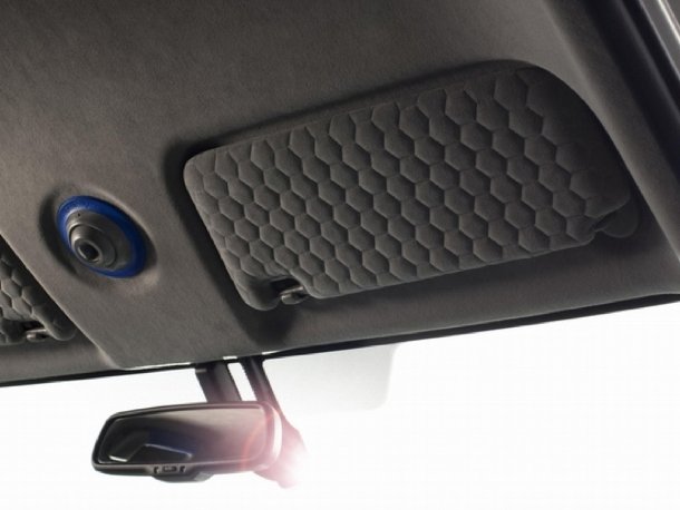 Im Innenraum durften sich die Colette-Designer ein wenig austoben. Dunkelbraunes Leder im Farbton „Zartbitter Schokolade“ wurde mit blauen Ziernähten und einigen Details in Alcantara so verarbeitet, dass ein durchaus stimmiges Bild entstanden ist. Bei der Farbe orientierte man sich am Colette-Maskottchen, einem dunkelbraunen Hund namens Oscar. Auf den Sitzflächen, den Türtafeln und den Sonnenblenden finden sich rautenförmige Steppungen, die auf den beigelegten, Colette-blauen Kissen wieder aufgenommen wird. Die inneren Türgriffe und die Dekorleisten sind aus Aluminium gefertigt und mit Gravuren versehen. Beim Start des serienmäßigen Navigationssystems erscheint im Display das „Cygnet & Colette“-Logo.