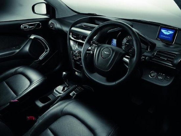 Den Kontrast dazu bildet die Launch Edition Black. Magic Schwarz metallic ziert die Karosserie und wird durch zwei mattschwarze Längsstreifen abgerundet. Auch hier kommen 16 Zoll große Leichtmetallräder zum Einsatz, die diamantpoliert wurden. Allerdings sind hier die Akzente schwarz lackiert. Der Innenraum ist komplett mit schwarzem Leder ausgekleidet, das in der Sitzmittelfläche in Diamantenform perforiert ist. Die Dekorflächen tragen schwarzen Chrom und die Aston Martin-Logos schwarze Flügel.