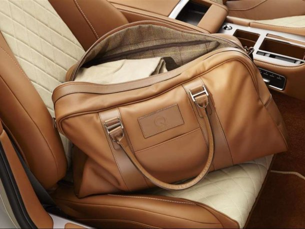 Bereits die Lackierung in einem warmen Silberfarbton in Verbindung mit einem cremefarbenen Stoffverdeck weiß zu begeistern. Das Interieur hingegen dürfte die Herzen von Reitern höher schlagen lassen. Große Teile des Innenraums zeigen sich in sattelbraunem Leder, unterbrochen nur durch die inneren Sitzflächen, die mit elfenbeinfarbenem Alcantara in Diamantsteppung bezogen wurden. Auf die vorderen Kopfstützen und den Lehnenbereich zwischen den hinteren Sitzen wurde ein Pferdekopf gestickt. Darunter findet man ein speziell von Q by Aston Martin angefertigtes Aufbewahrungsfach im Stil von ledernen Satteltaschen, das zwischen den hinteren Sitzflächen fest montiert ist. Zusätzlich wird ein passendes Gepäckset in sattelbraunem Leder mitgeliefert.