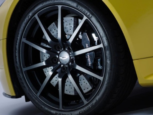 Um der Mehrleistung gerecht zu werden, erhält der V12 Vantage S adaptive Dämpfereinheiten, die sich über einen Schalter im Innenraum in drei Modi einstellen lassen. Zwischen den Schalterstellungen „Normal“, „Sport“ und „Track“ gibt es deutlich erfahrbare Unterschiede im Härtegrad der Dämpfer und den damit verbundenen Handlingseigenschaften. Für perfekte Verzögerungen auf Straße und Rennstrecke sind serienmäßig Carbon-Ceramic-Bremsen der dritten Generation an Bord. Sie verbergen sich hinter ultraleichten Schmiedefelgen im Zehnspeichendesign die jeweils über ein Kilogramm gegenüber den konventionellen Vantage-Rädern einsparen und mit Pirelli P Zero Corsa Reifen bezogen sind.