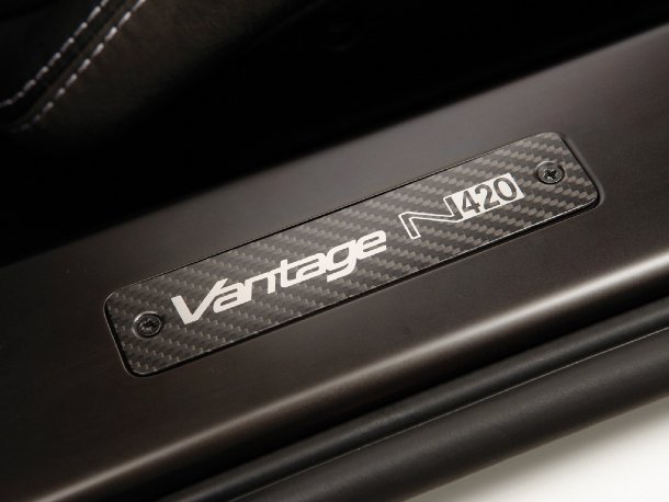 Seit letztem Jahr arbeitet in der kompletten V8 Vantage-Flotte ein weiterentwickeltes V8-Triebwerk mit 4,7 Litern Hubraum. Dieser Motor wird nun in gleicher Konfiguration übernommen und in den neuen Aston Martin V8 Vantage N420 verfrachtet. Dort leistet er – der Name nimmt es ein wenig vorweg – 420 bhp, was nach unserer Rechnung 313 kW/426 PS entspricht. Für die knapp £3000,- (rund 3.600,- €), die der N420 gegenüber dem N400 mehr kostet, bewegt man nun 27 kg weniger Gewicht als im Standard-Vantage über die neuen diamantgedrehten 10-Speichen-Felgen mit glanzschwarzen Applikationen. Auffällig ist auch der schwarze Kühlergrill, sowie die graphitfarbenen Endtöpfe an der Abgasanlage, einen Kohlefaser-Diffusor am Heck und seitliche Luftauslassblenden in Sichtcarbon. Den N420 wird es wieder als Coupé und Roadster und wahlweise mit Sechsgang-Schaltung oder Sportshift-Automatik geben.