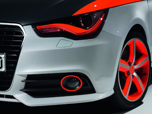 Ebenfalls mittels Klebefolie entstand ein „Follow Me“-Fahrzeug im Stile der gleichlackierten Wagen auf Flughäfen in aller Welt. Definitiv würde sich der A1 in dieser Aufgabe recht gut machen. Man stelle sich einen Airbus A380 vor, der dem A1 Follow Me-Car zu seiner Parkposition folgt. Neben dem auch hier verbauten S-Line-Paket finden sich an der Vorderachse in Wagenfarbe lackierte Felgen. Ob diese Option den Weg in die Ausstattungslisten schaffen wird, ist bislang noch nicht bekannt. Die ebenfalls in Wagenfarbe gehaltenen Tachoscheiben sind dabei eher denkbar.