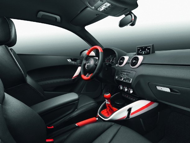 Ebenfalls mittels Klebefolie entstand ein „Follow Me“-Fahrzeug im Stile der gleichlackierten Wagen auf Flughäfen in aller Welt. Definitiv würde sich der A1 in dieser Aufgabe recht gut machen. Man stelle sich einen Airbus A380 vor, der dem A1 Follow Me-Car zu seiner Parkposition folgt. Neben dem auch hier verbauten S-Line-Paket finden sich an der Vorderachse in Wagenfarbe lackierte Felgen. Ob diese Option den Weg in die Ausstattungslisten schaffen wird, ist bislang noch nicht bekannt. Die ebenfalls in Wagenfarbe gehaltenen Tachoscheiben sind dabei eher denkbar.