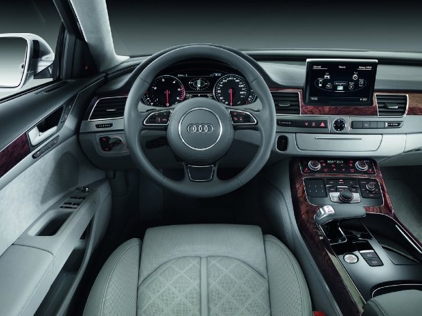 Der A8 bleibt natürlich hauptsächlich eine Luxuslimousine, die mit technischen Helfern und Bequemlichkeiten gefüllt wird. So gibt es für die Sicherheit und Reisebequemlichkeit ein adaptives Fahrwerk, einen Abstand-regulierten Tempomat, der sogar bis zum Stillstand abbremst, einen Spurassistent, eine Nachtsichtkamera mit bis zu 300 Metern Reichweite, sowie einen Park-Assistenten und eine Anzeige für die gerade geltende Geschwindigkeitsbegrenzung. Zu guter Letzt gönnt Audi seinem neuen Flaggschiff ein generalüberholtes Steuerungssystem, wie es heutzutage in jedem Auto dieser Klasse zu finden ist.