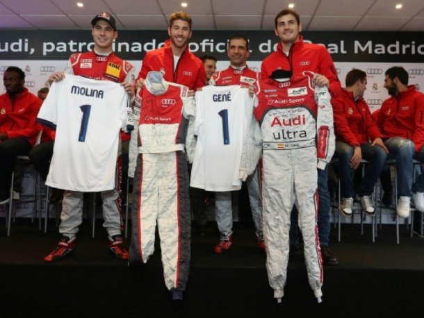 Die spanischen Audi-Rennfahrer Miguel Molina und Marc Gené erhielten von Real Madrid exklusive Trikots mit der Spielernummer 1.