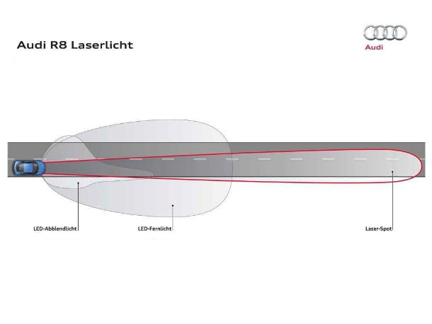 Im Wettstreit um das erste in Serie verbaute Laserlicht scheint Audi zu gewinnen. Zumindest bringen die Ingolstädter im Sommer eine exklusive Sonderserie ihres Sportwagens unter dem Namen Audi R8 LMX in Deutschland auf den Markt, bei dem das konventionelle Fernlicht durch Laserleuchten abgelöst wurde. Diese Technik leuchtet doppelt so weit als das bereits sehr gute LED-Fernlicht moderner Fahrzeuge. Nur 99 Exemplare des R8 LMX werden gebaut.