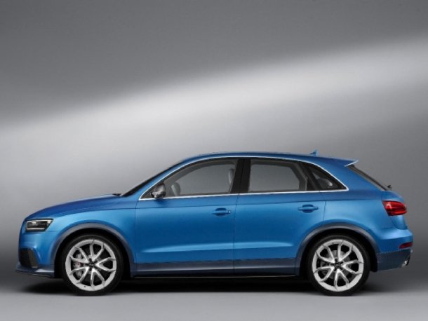 Optisch gibt sich die Studie des RS Q3 direkt als Mitglied der RS-Familie zu erkennen. Der Karosserie des Kompakt-SUVs wurden durch sportlicher gestaltete Schürzen an Front und Heck mehr Muskeln verpasst, während die Lackierung in Ordos Blau matt einen weiteren optischen Höhepunkt setzt. Gegenüber seinen Serienbrüdern rückt der RS Q3 rund 25 Millimeter näher an die Asphaltdecke und trägt 20 Zoll große Leichtmetallräder, die mit Reifen der Dimension 255/30 bestückt sind. Die Waben in den Kühleröffnungen in der Frontschürze erhielten eine neue, dreidimensionale Struktur und weisen in der untersten Öffnung einen silbernen quattro-Schriftzug auf. Die unteren Bereiche der Schürzen, die Schwellerleisten und die Verbreiterungen der Radhäuser sind aus Carbon gefertigt und mit einem blau eingefärbten Klarlack überzogen. An den Außenspiegelkappen kommt schwarzes Sichtcarbon zum Einsatz.