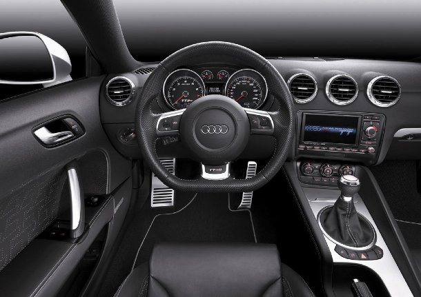 Der kräftige 2,5 TFSI soll verhältnismäßig sparsam mit dem Kraftstoff umgehen und im Mittel nur 9,2 l / 100 km verbrauchen (Coupé), bzw. 9,5 l / 100 km (Roadster). Werte, die in der Praxis wohl nur äußerst disziplinierte Fahrer erreichen werden. Serienmäßig steht der TT RS auf 18 Zoll Felgen mit der Bereifung 245/45. Felgen im 18 Zoll Format sind auch notwendig, da die die Bremsscheiben auf der Vorderachse im Durchmesser 370 mm messen, auf der Hinterachse sind es 310 mm. Auf Wunsch sind auch Felgen in 19 Zoll, bzw. 20 Zoll erhältlich.