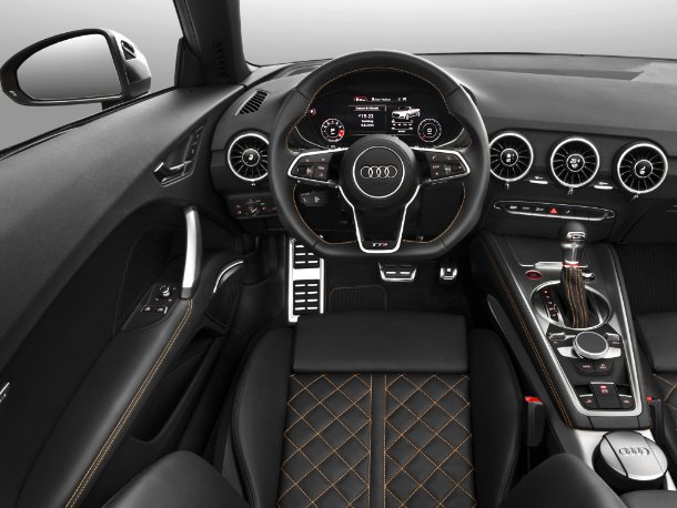 Im Interieur setzt Audi bei allen TT-Ablegern auf das innovative Virtual Cockpit, bei dem ein 12,3 Zoll großer Bildschirm die klassischen Rundinstrumente hinter dem Lenkrad ersetzt. Auf ihm werden in der klassischen Ansicht Tacho und Drehzahlmesser dargestellt. Allerdings kann der Fahrer Themen wie die Navigationskarte auf Knopfdruck in den Vordergrund rücken. Dazu gesellt sich das neue Bediensystem für das MMI-Infotainmentsystem inklusive Navigation, das sich über sechs Tasten, ein Touchpad und per Sprache steuern lässt. Die Belüftungsfunktionen werden direkt über Einstellknöpfe auf den mittleren Lüftungsdüsen am Armaturenbrett geregelt.