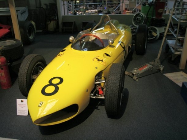 Da man schlecht die Fahrer ins Museum stellen kann, begnügt man sich mit einigen Rennfahrzeugen. Wobei „einige“ schwer untertrieben ist. Die Sonderausstellung beginnt kurz nach dem zweiten Weltkrieg und umfasst Tourenwagen, Rallyefahrzeuge, Sportwagen und Formel 1-Renner. Speziell Ferrari ist dabei bestens aufgestellt, was wohl auch an Jacques Swaters liegt, der als Privatrennfahrer zum ersten Ferrari-Importeur der Welt aufstieg und mit seinem Rennstall Ecurie Francorchamps sogar in der Formel 1 unterwegs war. Hierzu lieh das Werk ihm einen 156 F1, der wegen seiner Frontgestaltung „Shark Nose“ genannt wurde. Der Wagen wurde in der klassischen Rennfarbe Belgiens, gelb, lackiert und erreichte mit Olivier Gendebien am Steuer den vierten Platz hinter den drei Werks-Ferrari. Da Rennfahrzeuge damals noch nicht als wertvoll erachtet wurden, zerstörte die Scuderia Ferrari alle originalen 156 F1. Das ausgestellte Fahrzeug ist ein aufwändiger Nachbau, für den beinahe acht Jahre Bauzeit benötigt wurden.