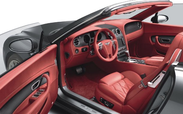 Auch der Innenraum des GTC Speed wurde verfeinert. Schon beim Öffnen der Türen gibt sich der GTC Speed durch einen ‚Speed’-Schriftzug auf den Einstiegsleisten zu erkennen. Im Fußraum findet man, sportwagentypisch, Aluminium. Das gesteppte Leder in der Sitze und Türverkleidungen, sowie das Sportlenkrad unterstreichen die sportliche Note.
