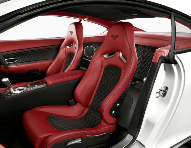 Der Innenraum des Continental Supersports wurde sportlich und edel gestaltet. Der reine Zweisitzer (-45 kg) glänzt mir viel Carbon und Alcantara. Besonders ins Auge fallen die neuen, extra Leichten Sportsitze mit Rückenschalen aus Carbon. Dort, wo eigentlich die Rücksitze zu finden sind, ist nun ein Staufach mit Carbonstrebe zur Gepäcksicherung.
