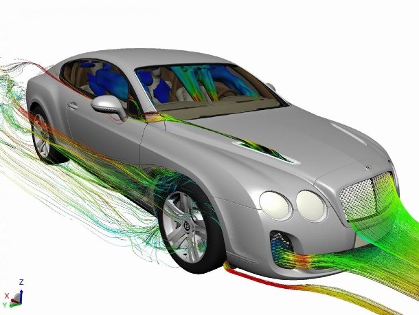 Diese Windkanalsoftware nutzt Bentley selbst ebenfalls zur Entwicklung der eigenen Modellreihen. Letztes damit getestetes Produkt ist der Continental Supersports.