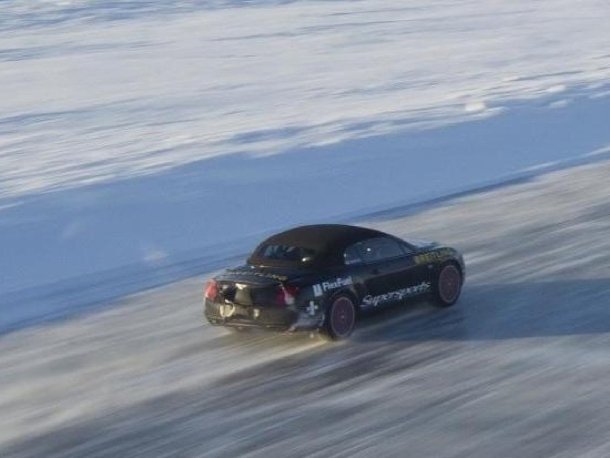 Vor vier Jahren trat Bentley erstmals mit einem Continental GT an, um den Geschwindigkeitsweltrekord auf Eis zu brechen. Man schaffte es, verfehlte jedoch knapp die 200 mph-Marke. Um diese offene Rechnung zu begleichen trat man nun mit einem Continental Supersports Convertible erneut an. Das Ergebnis ist mehr als überzeugend. Am Steuer des Bentley drehte der vierfache finnische Rallyeweltmeister Juha Kankkunen.