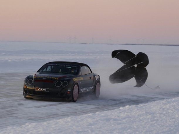 Vor vier Jahren trat Bentley erstmals mit einem Continental GT an, um den Geschwindigkeitsweltrekord auf Eis zu brechen. Man schaffte es, verfehlte jedoch knapp die 200 mph-Marke. Um diese offene Rechnung zu begleichen trat man nun mit einem Continental Supersports Convertible erneut an. Das Ergebnis ist mehr als überzeugend. Am Steuer des Bentley drehte der vierfache finnische Rallyeweltmeister Juha Kankkunen.