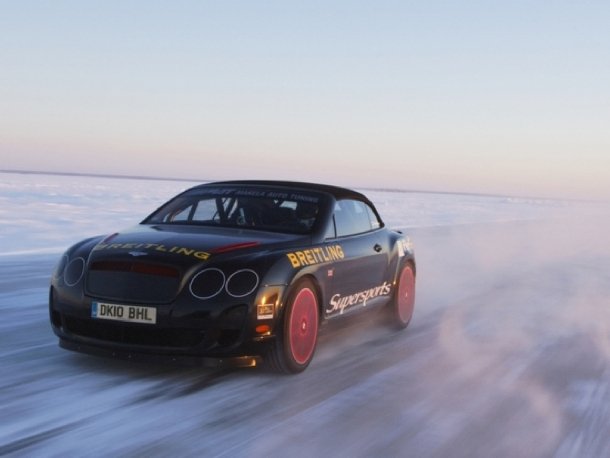 Vor vier Jahren trat Bentley erstmals mit einem Continental GT an, um den Geschwindigkeitsweltrekord auf Eis zu brechen. Man schaffte es, verfehlte jedoch knapp die 200 mph-Marke. Um diese offene Rechnung zu begleichen trat man nun mit einem Continental Supersports Convertible erneut an. Das Ergebnis ist mehr als überzeugend. Am Steuer des Bentley drehte der vierfache finnische Rallyeweltmeister Juha Kankkunen.
