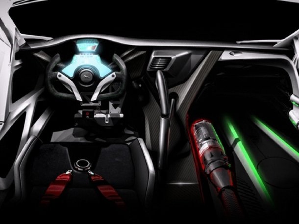 10 Zentimeter tiefer als die Straßenversion, durch Aerodynamische Anbauteile inklusive massigem Diffusor um gut 60 Zentimeter verbreitert, ein riesiger Doppelstock-Flügel auf dem Heckdeckel, aller Schnick-Schnack aus dem Interieur entfernt und mit 325er Gummis im 19 Zoll-Format versehen – so präsentiert sich die Rennversion des B99. Zusätzlich auffällig lackiert in Silber und Neongrün mit Sichtcarbonteilen. Damit die Konkurrenz nicht den läppischen 570 PS davonfahren, lädt Bertone noch einmal zwei Elektromotoren nach, welche dem B99 GT zu 725 kW/980 PS an allen vier Rädern verhelfen sollen. Welche Rennserie mit derart viel Leistung angedacht war, wird von den Italienern leider nicht erwähnt.