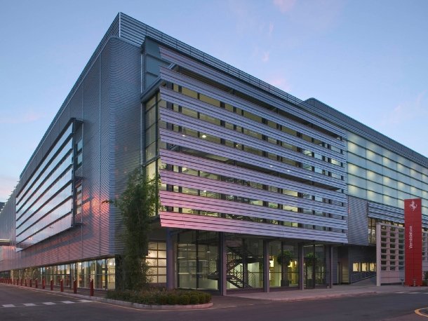 Wir beginnen unseren Rundgang an der Forschungs- und Entwicklungsabteilung. Zwar dürfen wir aus verständlichen Gründen dieses Gebäude nicht betreten – auch wenn wir gerne bereits jetzt einen Blick auf die kommenden neuen Straßenrenner geworfen hätten – aber schon von außen bekommt man einen Eindruck der Arbeitsverhältnisse, auf die Ferrari besonders stolz ist.