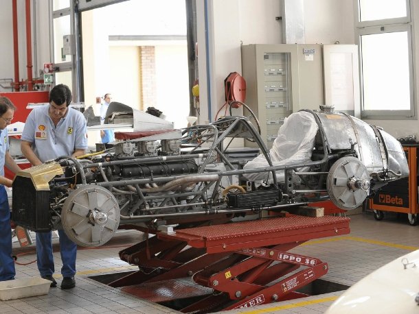 Eine ebenfalls interessante Abteilung hat es sich in einem der alten Gebäude auf dem Ferrari-Werksgelände gemütlich gemacht: Ferrari Classiche. Hier kümmert man sich um werkseigene Schmuckstücke, aber auch um die Restaurierung und Bewertung von Kundenautos aus allen Baujahren seit 1947. Dabei ist es einerlei, ob es sich dabei um einen Rennwagen oder einen „Alltags“-Ferrari handelt.