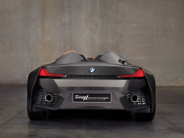 Klare Flächen und scharfe Kanten definieren das Bild eines sportlichen Roadsters, womit die Hommage deutlich das Vorbild aufgreift. Das komplette Fahrzeug ist keilförmig nach vorne geneigt und wirkt so schon im Stand so, als seie es bereits mit ordentlicher Geschwindigkeit unterwegs. Anstelle von Türen gibt es lediglich tiefe Einschnitte in den Seiten, die den Einstieg erleichtern und die Besatzung zu einem aktiven Teil der Fahrt werden lassen. Große Lufteinlässe und die senkrecht stehende Niere in Kombination mit zwei Rundleuchten lassen die Front zum einen modern aussehen, nehmen zum anderen aber auch das Design des 328 auf und interpretieren es neu. Unter der mit breiten Lederriemen gehaltenen Haube arbeitet ein 3 Liter großer Sechszylindermotor – ein Liter mehr Hubraum als im historischen Vorbild, aber ebensoviele Zylinder. Durch stilistisch zurückhaltende Rückleuchten und großzügige Entlüftungsöffnungen fügt sich das Heck in das leichte Design des 328 Hommage ein.
