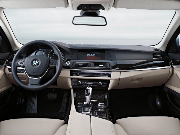 Im Innenraum besinnt man sich auf die glorreiche Vergangenheit der Marke und positioniert die wichtigsten Bedieneinheiten und die Displays wieder mehr Fahrer-orientiert. Eine erfreuliche Entwicklung. Natürlich kann in der heutigen Zeit keine luxuriöse Limousine mehr ohne Bordcomputer, Navi oder andere elektronische Spielzeuge in die Showrooms rollen. So auch der neue 5er nicht. Aus dem 7er wird das SurroundView-System übernommen, bei dem man mittels Kameras aus unübersichtlichen Straßen herausschauen kann, ohne dabei bereits mit dem halben Auto im fließenden Verkehr zu stehen. Die Rückfahrkamera und ein Parkassistent ermöglichen es wirklich jedem, rückwärts einzuparken, egal ob Männlein oder Fräulein. Der Tempomat ist mit einer Abstandsmessung und einem Auffahrwarner verbunden, der im Notfall die Bremsung einleitet, um einen Unfall zu verhindern. Überdies sind noch einige weitere Fahrerassistenz-Systeme wie Spurhalte-Assistent und das Nachtsichtgerät BMW Night Vision mit Personenerkennung im Programm.