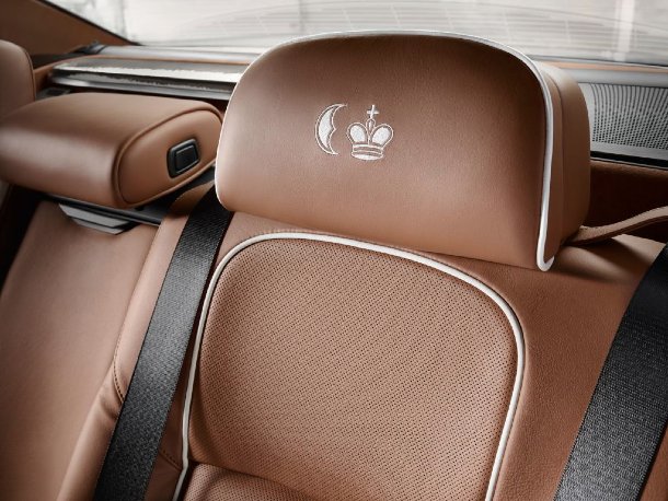 In die Kopfstützen wurden die Bestandteile des Meisterstempels von Robbe & Berking eingestickt: Der Halbmond für Silber und die Krone für Deutschland.