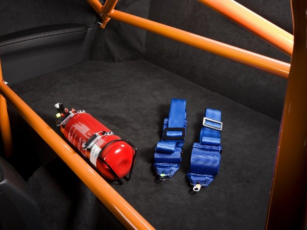Das Auto ist speziell für Fahrer erdacht, die gerne mal auf Trackdays unterwegs sind. Dazu sind im Fahrzeug ein Feuerlöscher und eine Vorbereitung für einen Batteriehauptschalter und einen Notausschalter sicherheitshalber verbaut.