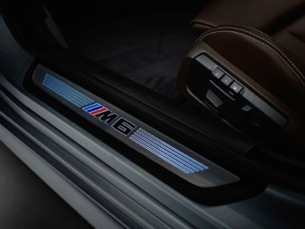 Diese Dachvertiefung wird im Interieur wieder aufgegriffen, indem der Alcantara-Dachhimmel an dieser Stelle eine Mittelbahn in Leder erhält. Im restlichen Innenraum ist serienmäßig die Lederausstattung Merino mit erweiterten Umfängen verbaut, die auch die beiden Sportsitze mit integrierten Gurten für Fahrer und Beifahrer umfasst. Für mehr Praktikabilität im Alltag lässt sich der 460 Liter fassende Gepäckraum durch das umlegen der Fondsitzbank auf bis zu 1.265 Liter erweitern. Zur weiteren Serienausstattung zählen das M Sportfahrwerk mit dynamischer Dämpferkontrolle, Sitzheizungen für Fahrer und Beifahrer, das Radio BMW Professional, eine Alarmanlage und automatisch abblendende Innen- und Außenspiegel. Gegen Aufpreis sind eine Vierzonen-Klimaautomatik, M-Multifunktionssitze, Sitzheizung im Fond, Soft-Close-Automatik für die Türen, schlüsselloser Komfortzugang, elektrische Sonnenrollos, eine Lenkradheizung, ein Bang & Olufsen High End Surround Sound System, das Navigationssystem Professional und eine Carbon-Keramik-Bremsanlage erhältlich. Auch die neuartigen Fahrassistenzsysteme wurden nicht vergessen und sind im M6 Gran Coupé im Angebot von BMW ConnectedDrive zusammengefasst. Dazu zählen unter anderem ein Head-Up-Display, eine Park Distance Control mit Rückfahrkamera, Fernlichtassistent oder Spurhalte-Assistent.