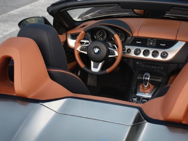 Auch im Interieur spielt Sportlichkeit eine große Rolle, immerhin soll diese Kooperation zwischen BMW und Zagato Lust auf’s Fahren machen. Als Übergang zwischen Karosserie und Innenraum wurde ein Band aus braunem Leder verbaut, durch welches das Cockpit umrahmt wird. Es schließt neben den Türbrüstungen und dem oberen Teil der Armaturentafel auch die Rückseite der Sitze und die Überrollbügel mit ein. Im ansonsten größtenteils schwarz gehaltenen Interieur wurden gekonnt Akzente im gleichen Braunton gesetzt. Neben den Griffflächen am Lenkrad zum Beispiel auch an den Kedern der Sitze und den überall sichtbaren Kontrastnähten. Auf den Kopfstützen weist das wohlbekannte Zagato-Z auf die Besonderheit dieses Roadsters hin.