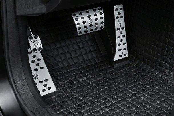 Innen verwöhnt der Brabus E V12 „one of ten“ mit einer Aura aus Leder, Alcantara und Carbon. Um der Sache noch eins draufzusetzen hat Brabus mal eben den kompletten Bodenteppich durch gestepptes Leder ersetzt. Als netten Kontrast zum Dachhimmel aus Alcantara sozusagen. Kleinigkeiten wie eine bis 400 km/h reichende Tachoskalierung, beleuchtete Einstiegsleisten, Aluminiumpedalerie, Einzelsitzanlage hinten und eine silberne Plakette mit Seriennummer vervollständigen das Gesamtpaket.