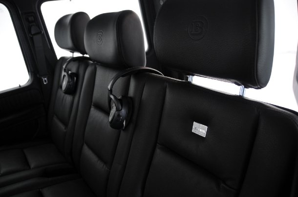 Die neuen LED-Tagfahrleuchten verleihen der Front des G V12 S eine besondere Optik. Im Cockpit findet man ein ergonomisch geformtes Sportlenkrad, sowie eine Tachoskala bis 280 km/h. Beim Einsteigen erblickt man sofort die Edelstahl-Einstiegsleisten, mit beleuchtetem Brabus-Logo. Anschließend schmiegt man sich dann ins atmungsaktive Mastik-Leder. Optional kann man den G V12 S auch in ein Büro auf Rädern verwandeln und mit absoluten High-End Geräten aus der Unterhaltungselektronik ausstatten.