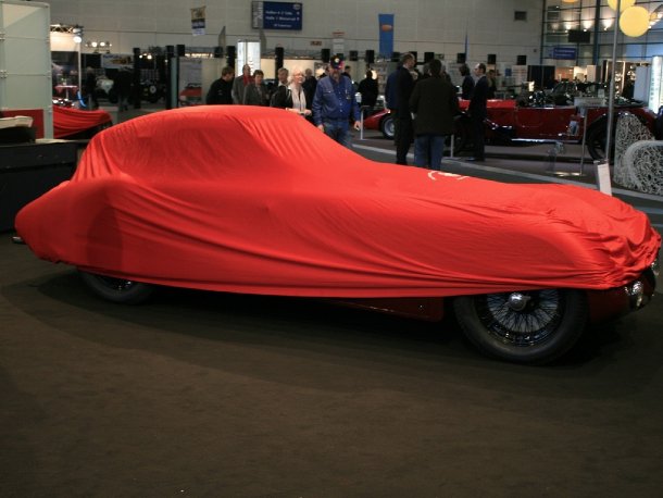 Wer, wie ich, am Freitag um kurz nach 9:00 Uhr bereits die Halle 5 betrat, war eventuell etwas enttäuscht ob der abgedeckten Alfa Romeos auf der Sondershow-Fläche. Jedoch können diese Autos durchaus auch unter rotem Tuch ihre reizvollen Formen entfalten. „Schlafende Schönheiten“ ist wohl der passende Titel und nicht wenige Besucher rätselten, welche Fahrzeuge sich wohl unter diesem oder jenem Tuch verbergen möge. Nach der feierlichen Eröffnung der Messe wurde von Bremens Wirtschafts-Senator Ralf Nagel und Messe Bremen-Geschäftsführer Hans Peter Schneider unter den wachsamen Augen vom Alfa Romeo Storico-Sammlungsleiter Stefano Agazzi das Fahrzeug enthüllt, das bereits monatelang von den offiziellen Messeplakaten herabstrahlte: der Alfa Romeo 33 Stradale Prototyp.