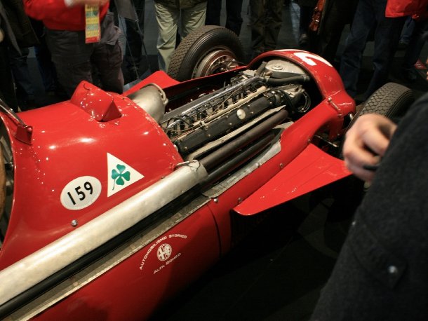 Ein weiteres Ausstellungsstück war der Gran Premio Tipo B P3 von 1932. Mit diesem 8-Zylinder-Monoposto wurden damals bereits 230 km/h erreicht. Rennleiter war übrigens ein gewisser Enzo Ferrari, der einige Jahre zuvor noch als Werksfahrer am Steuer der Alfa Romeo-Rennwagen gedreht hatte.