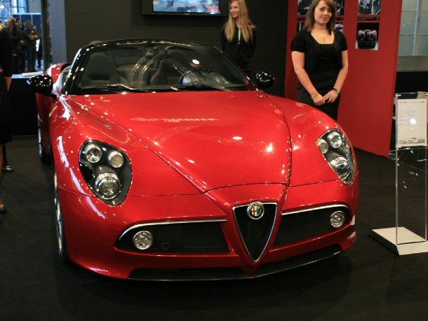 Aus der Neuzeit war ein Exemplar des auf 500 Stück limitierten Alfa Romeo 8C Spider vertreten. Dieses Fahrzeug holt die sinnlichen Formen des für Alfa typischen „Cuore Sportivo“, des „sportlichen Herzens“ wieder hervor und verkörpert mit seinem 450 PS starken V8 eine Wiederbelebung des 33 Stradale.