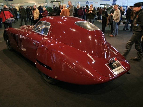1938 nahm Alfa Romeo mit dem 8C 2900 B am 24-Stunden-Rennen in Le Mans teil. Das Fahrzeug führte mit über 10 Runden Vorsprung, musste dann jedoch aufgrund eines Ventildefektes aus dem Rennen genommen werden. Nach vielen Jahren in einer privaten englischen Fahrzeugsammlung, konnte es Mitte der 80er Jahre von Alfa Romeo zurückgekauft und restauriert werden. Die wahnsinnig sinnliche Karosserieform kam von Touring in Italien und war durchaus praktisch gestaltet. So gibt es seitliche abnehmbare Wartungsklappen und aerodynamisch günstig versteckte Lederriemen für die Motorhaube.