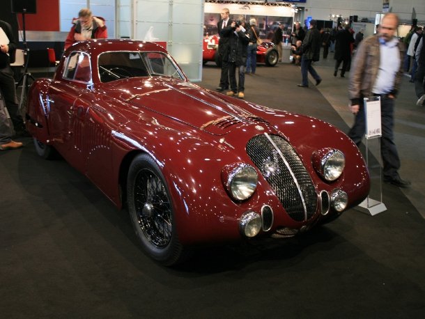 1938 nahm Alfa Romeo mit dem 8C 2900 B am 24-Stunden-Rennen in Le Mans teil. Das Fahrzeug führte mit über 10 Runden Vorsprung, musste dann jedoch aufgrund eines Ventildefektes aus dem Rennen genommen werden. Nach vielen Jahren in einer privaten englischen Fahrzeugsammlung, konnte es Mitte der 80er Jahre von Alfa Romeo zurückgekauft und restauriert werden. Die wahnsinnig sinnliche Karosserieform kam von Touring in Italien und war durchaus praktisch gestaltet. So gibt es seitliche abnehmbare Wartungsklappen und aerodynamisch günstig versteckte Lederriemen für die Motorhaube.